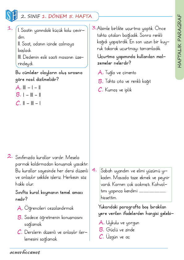 Hazırladığımız bu kapsamlı 2. sınıf haftalık paragraf dosyasında, öğrencilerin sıkılmadan çözebileceği zengin içerikler yer almaktadır. Dosya içerisinde şu bölümleri bulacaksınız: