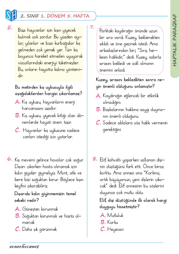 Diğer yandan, düzenli olarak paylaştığımız 2. sınıf haftalık paragraf testleri, öğrencinin sadece Türkçe dersindeki başarısını değil, tüm akademik hayatını olumlu etkiler. Çünkü okuduğunu anlama becerisi, matematik problemlerini çözmenin de temelidir. Uzmanlar çocukların günde en az 20 dakika okuma yapmasını önermektedir.
