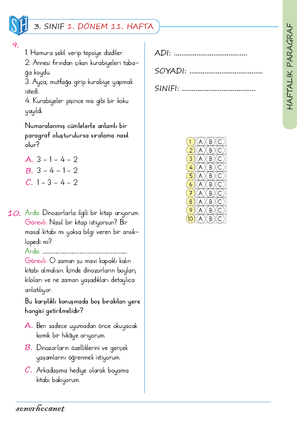 Diğer yandan, düzenli olarak paylaştığımız 3. sınıf haftalık paragraf testleri, öğrencinin sadece Türkçe dersindeki başarısını değil, tüm akademik hayatını olumlu etkiler. Çünkü okuduğunu anlama becerisi, matematik problemlerini çözmenin de temelidir. Uzmanlar çocukların günde en az 20 dakika okuma yapmasını önermektedir.