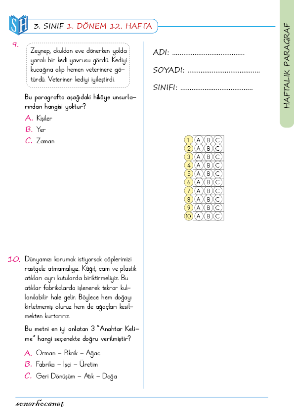 Hazırladığımız bu kapsamlı 3. sınıf haftalık paragraf dosyasında, öğrencilerin sıkılmadan çözebileceği zengin içerikler yer almaktadır. Dosya içerisinde şu bölümleri bulacaksınız: