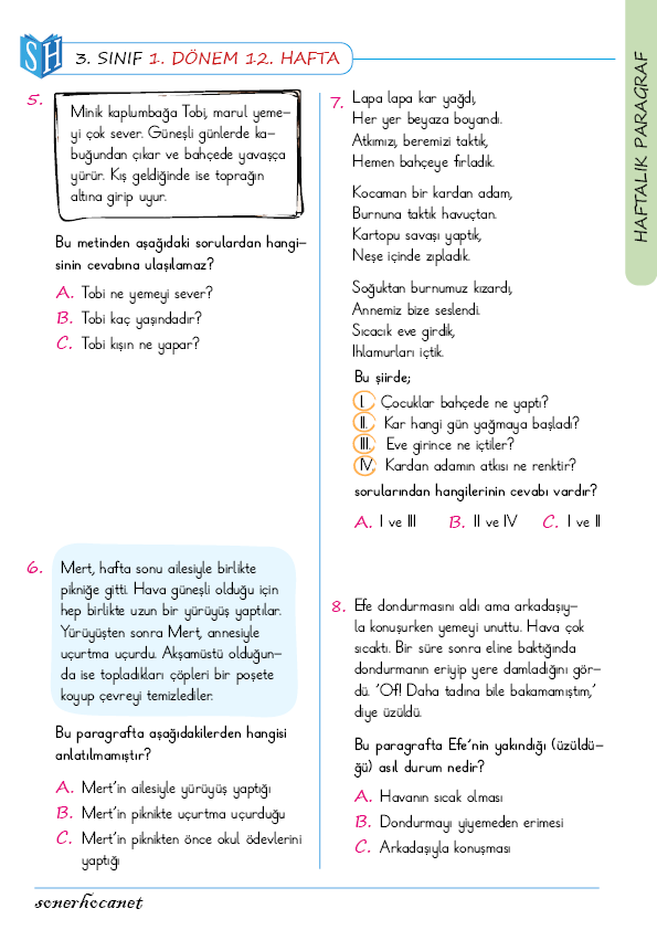3. Sınıf Haftalık Paragraf Soruları Nasıl Çözülmeli?