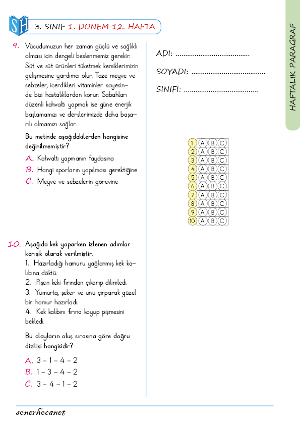 Diğer yandan, düzenli olarak paylaştığımız 3. sınıf haftalık paragraf testleri, öğrencinin sadece Türkçe dersindeki başarısını değil, tüm akademik hayatını olumlu etkiler. Çünkü okuduğunu anlama becerisi, matematik problemlerini çözmenin de temelidir. Uzmanlar çocukların günde en az 20 dakika okuma yapmasını önermektedir.