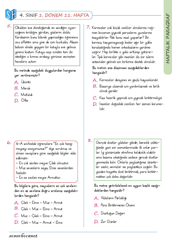 4. Sınıf Haftalık Paragraf Soruları Nasıl Çözülmeli?