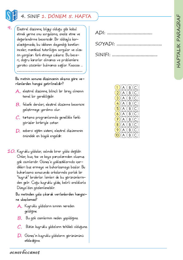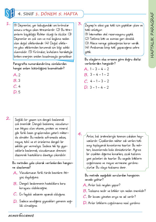 Hazırladığımız bu kapsamlı 4. sınıf haftalık paragraf dosyasında, öğrencilerin sıkılmadan çözebileceği zengin içerikler yer almaktadır. Dosya içerisinde şu bölümleri bulacaksınız:
